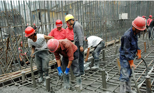 4、澆筑混凝土時應分段分層進行,每層澆筑高度應根據結構特點、鋼筋疏密決定。一般分層高度為插入式振動器作用部分長度的1.25倍,大不超過500mm,平板振動器的分層厚度為200mm。
